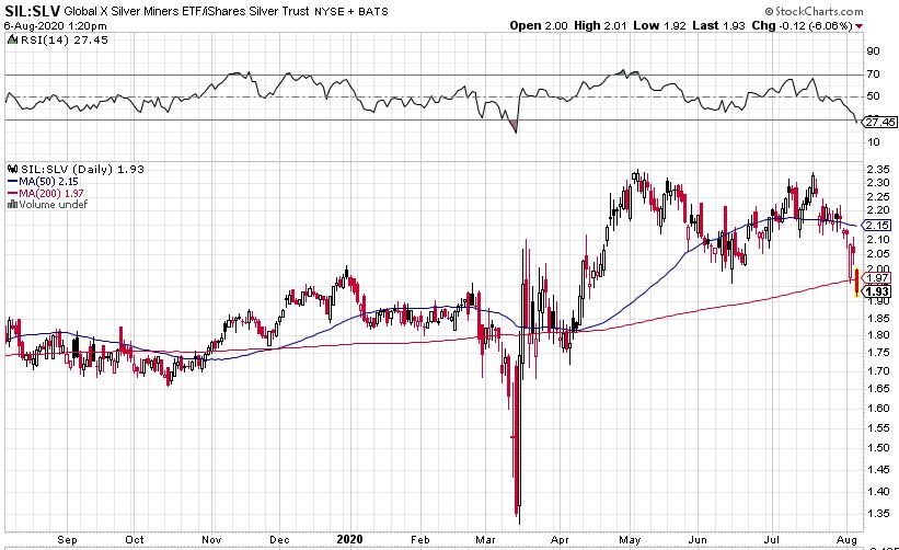Das Ratio Silberminen:Silber ist heute unten raus gefallen, und das in diesen spitzenmäßigen Anstieg des POS. Ein Doppeltop Anfang Mai und Mittel Juli ist vorausgegangen.