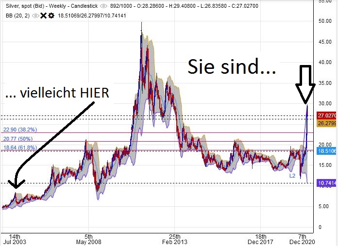 Für augenblickliche Silberbären... mal die Fib Retracement Levels für die gesamte Aufwärtsbewegung seit Corona.