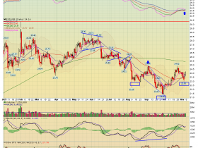 Hier könnte/dürfte a)der 'round number-Widerstand' (10) greifen. Und treffen wir b) auf einen Horizontalwiderstand. Ich gehe deshalb von Rückschlagspotential aus, das aber bei ~ 7,5 (Horizontal-Support, GD 50 daily) limitiert sein sollte.