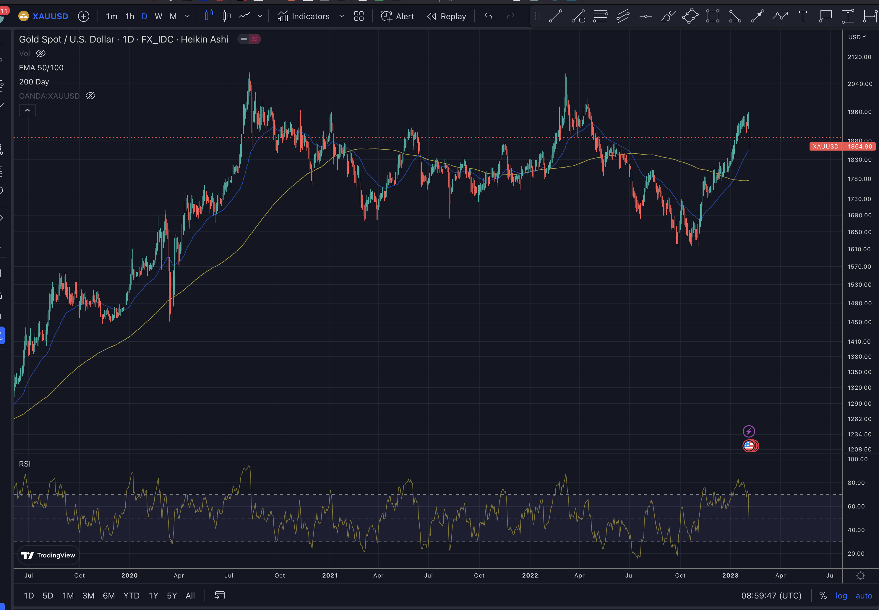 Zum Abschluss noch unsere Kirmeswährung mit einer klaren Divergenz im RSI, der den Anstieg nicht mehr mitgemacht hat. Unter 1,08 wird es wohl ungemütlich werden.