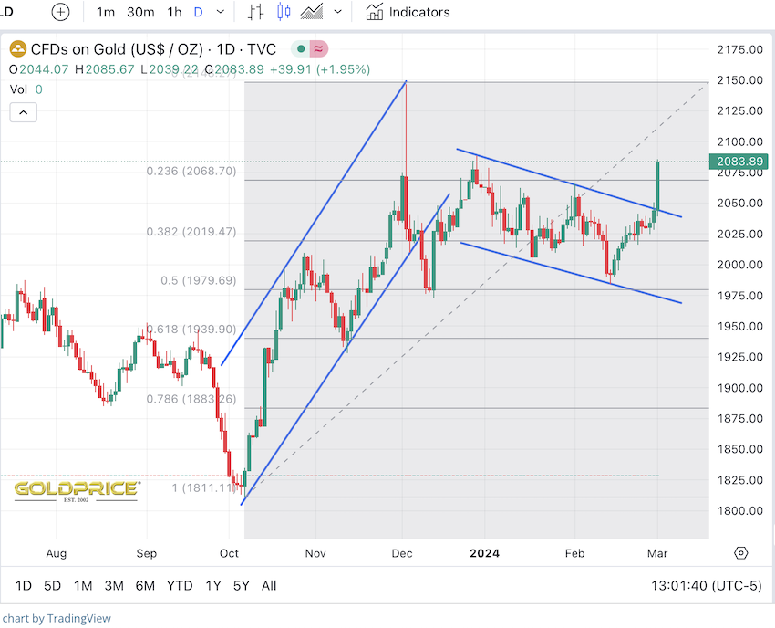 Edith sagt: Wir haben soeben den höchsten Wochenschlußkurs mit 2.082,79 $ eingetütet.