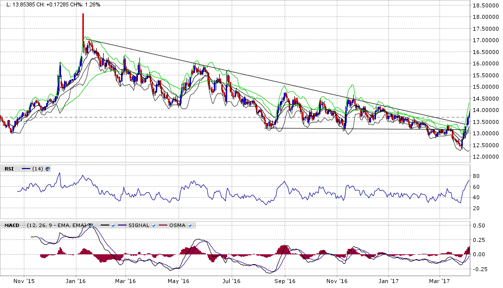 Südafrika: Einen grösseren Einfluss auf den JSE hat wohl auch der Wechselkurs USD/ZAR. Ich verfolge jenen schon länger, und zwar mit Verwunderung. Kein Wunder, haben sich Südafrikas Miner die letzten Monate unterdurchschnittlich entwickelt, stärkte sich der ZAR doch dauernd. Vor ein paar Tagen jedoch die grosse Wende, sogar Trendlinie bereits genommen.