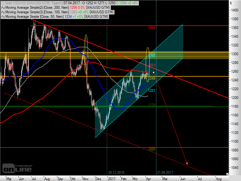 Gold vorerst genau an der Abwärtstrendlinie gescheitert. Diese entscheidende Marke lautet zz. 1.270 $. Darüber sollte Gold richtig durchstarten. Ansonsten gibt es nochmals eine Extrarunde Luftholen bis vermutlich 1.225 $. An Heddas Prognose eines Umkehrpunktes an der Abwärtstrendlinie mit anschließenden neuen Tiefs glaube ich weiterhin nicht. Aber: "who knows?"