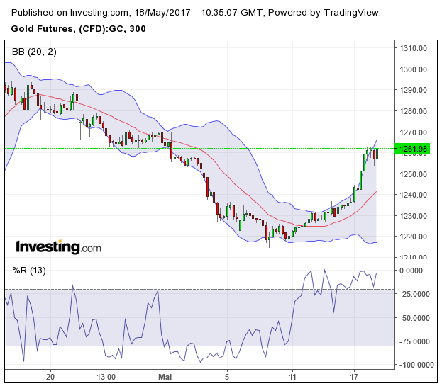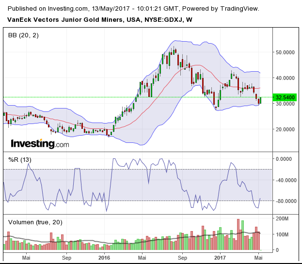 Widerstand am oberen Bollinger Band im Tageschart, aber im Wochenchart aufwärts.
