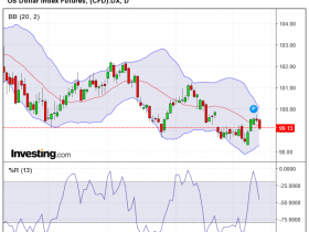 • Silber: Korrektur, Unterstützung mittleres Bollinger Band 16,7 bzw. unteres Bollingerband ca. 16,45