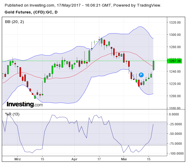Widerstand am oberen Bollinger Band im Tageschart, aber im Wochenchart aufwärts.