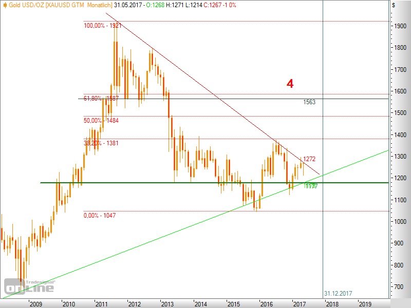 Eines ist klar: die Minen , Underperformer seit Sommer 2016...müssen raus aus 'ihrem' Dreieck und rüber über die 'rote' !