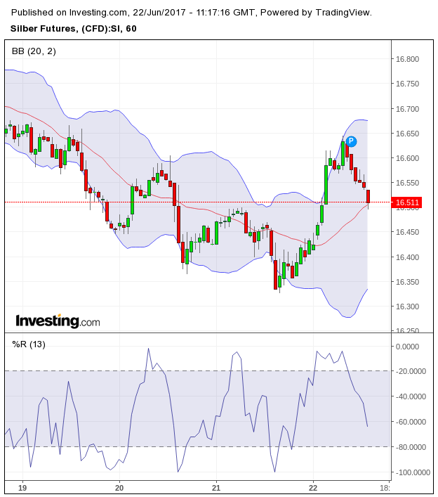 Silber stabilisiert sich. Positiv wäre ein höheres Tief bei ca. 16,45 im Stundenchart.