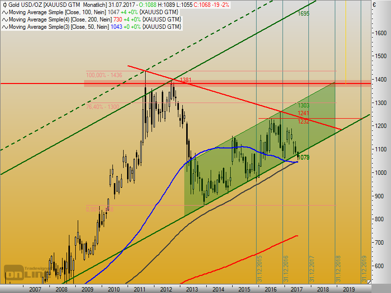 Wo liegt denn jetzt der langjährige Aufwärtstrend bei Gold/Silber in $/€ seit Ende 2013, was darf nicht unterschritten werden ?