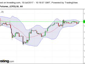 Gold und Silber sind etwas schwächer, aber im 5 Stundenchart immer noch über der mittleren Bollingerlinie. -