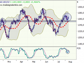 Rein theoretisch kann das schon alles gewesen sein mit Korrektur. Der Goldpreis blieb strikt in diesem flachen Abwärtstrendkanal. Heute am frühen Nachmittag das Hoch bei 1.265,48 $ und dann vorhin das Tief bei 1.251,58 $. Im Grunde genommen wie im Chart antizipiert. Solange dieser Trendkanal nicht impulsiv nach unten verlassen wird, sollten keine großen Abwärtsbewegungen bevorstehen.
