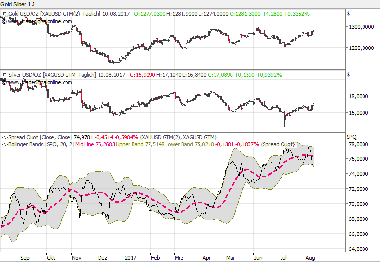 Stärke Gold zu Silber fällt bzw. relative Stärke von Silber steigt