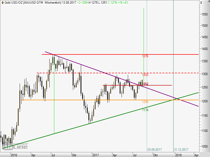 Widerstand Gold bei ca. 1300.