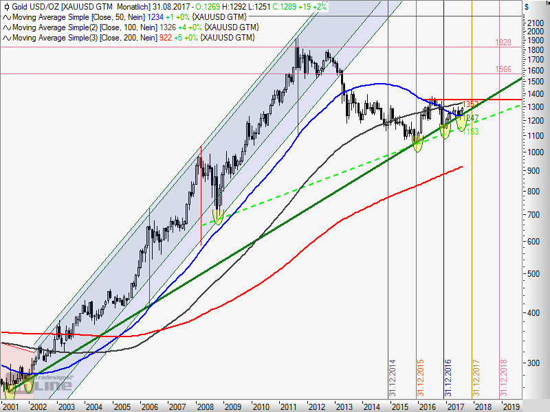 hier im chart habe ich mit gelben halbkreisen die wichtigen Punkte untermalt, so gesehen müssen wir schnell, sprich bis 2019 mindestens bis 1550$ gelangen, was dann kommt, keine Ahnung...aber der Bruch von 1350$ wäre sehr bullisch....