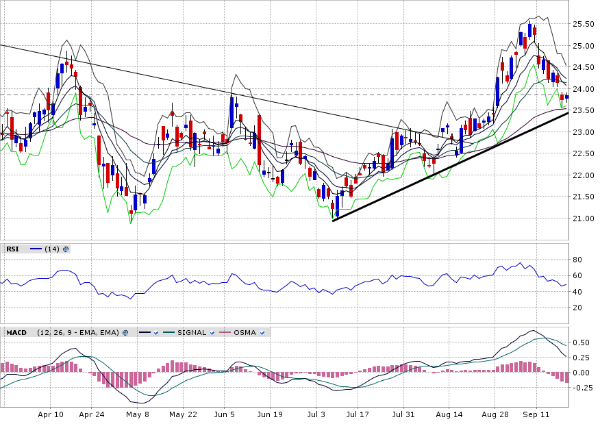 Chart 2 GDX: Trendline noch etwas unterhalb, sowie noch ein Gap von Ende August knapp unterhalb 23.50.