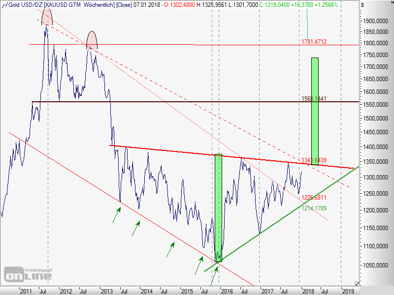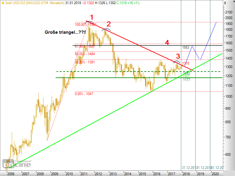 Hier sieht man sehr schön, wie wir mit dem Abwärtstrend zu kämpfen haben. Es sieht nicht schlecht aus, aber ob wir im 1 halbjahr die 1550 ansteuern oder es doch auf 2019 verschieben, bleibt wirklch unklar. Das kann man nicht eindeutig sagen, ich hoffe auf einen dynamischen Trend bis Ende März.( Blaue Linie )...mein Gefühl sagt mir, so richtige Sprünge wird es wohl ab 2019-2020 geben.