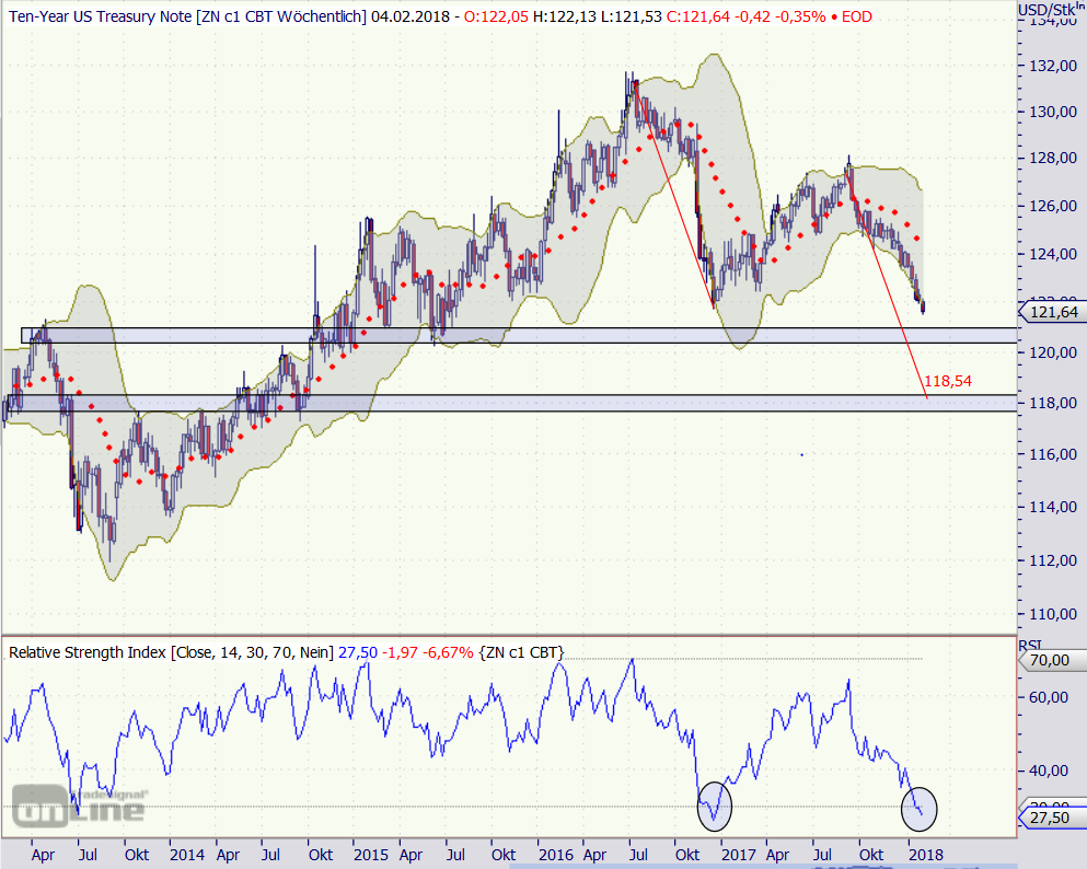 T-Notes sind im Wochenchart bereits überverkauft, aber Mr. Market neigt gerne zu Übertreibungen.