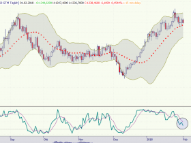 Der Momentumindikator ist unter die 50 gefallen.Das mittlere Bollingerband wird vermutlich nicht halten.