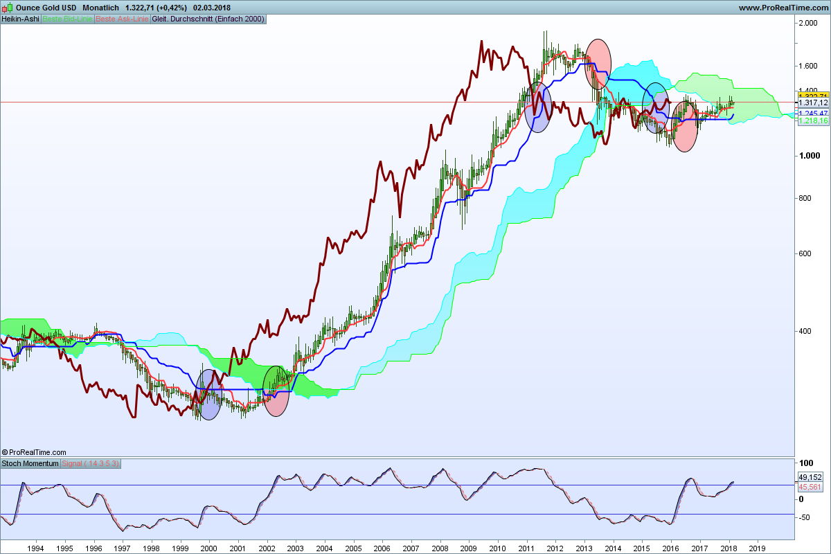 • Nachdem wieder ein Monat rum ist, ein Blick auf den Ichimoku-Chart von Gold in USD.