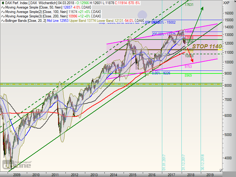 Monatlich und wöchentlich sehe ich einen traurigen Chart.