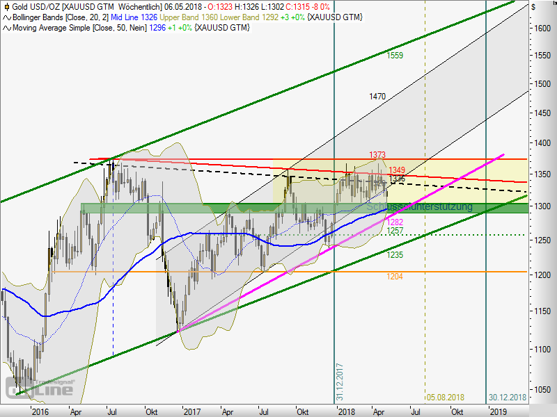 Die Woche ist um, die Kerze ist nicht schlecht, aber wir haben den Kanal verlassen. Somit wird wahrscheinlich sollte der Ausbruch kommen, wohl erst im zweiten Halbjahr kommen. Jetzt muss die roterosa Linie halten. Unter 1300 wird es gefährlich, evtl nochmal 1280..Test des Aufwärtstrend!! Ich bin vorsichtig Optimistisch..!!