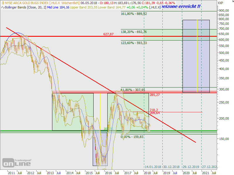 Sehr schön dargestellt. Ist natürlich nicht das, was ein Goldbulle sehen möchte, aber Charts lügen nicht.