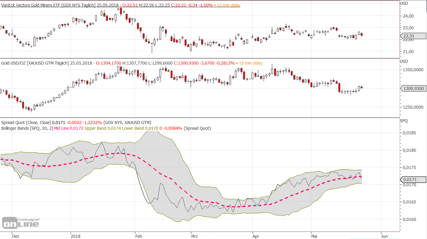 Die Goldminen (GDX) fallen stärker als Gold.