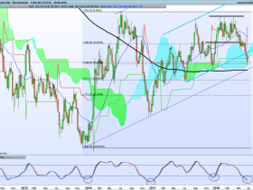 Was auch noch passst: Exakt heute wurde beim USD/JPY die Trendlinie (die fette obere) touchiert (oder knapp dran) und gleich darauf ging es wieder zurück. Das würde auch passen.