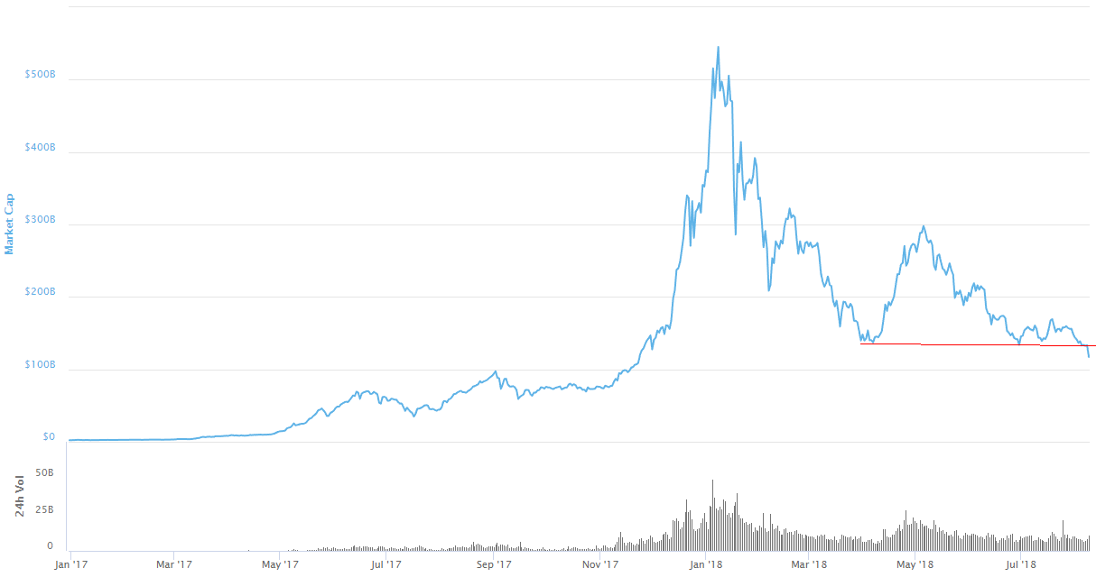 Schau dir bitte die Marktkapitalisierung aller Cryptos ohne Bitcoin an - die untere Linie wurde gerissen