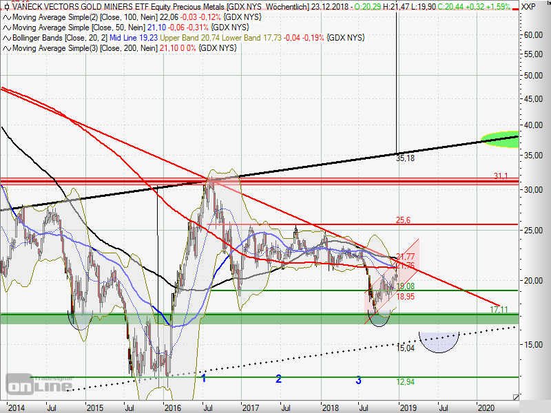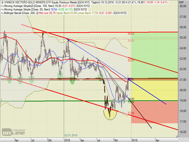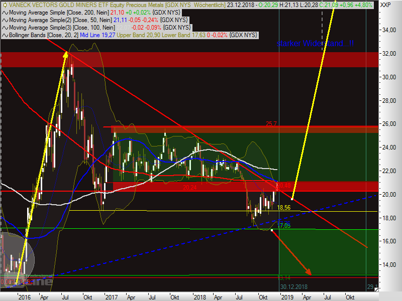 Hoffentlich kein Retest der 21 im GDX, harter Brocken die Widerstandslinie. Kleiner Kreuzwiderstand gestern..Brechen wir die 21, dann bin ich bullisch und würde den Einstieg empfehlen, so ist das Risiko noch zu gross.