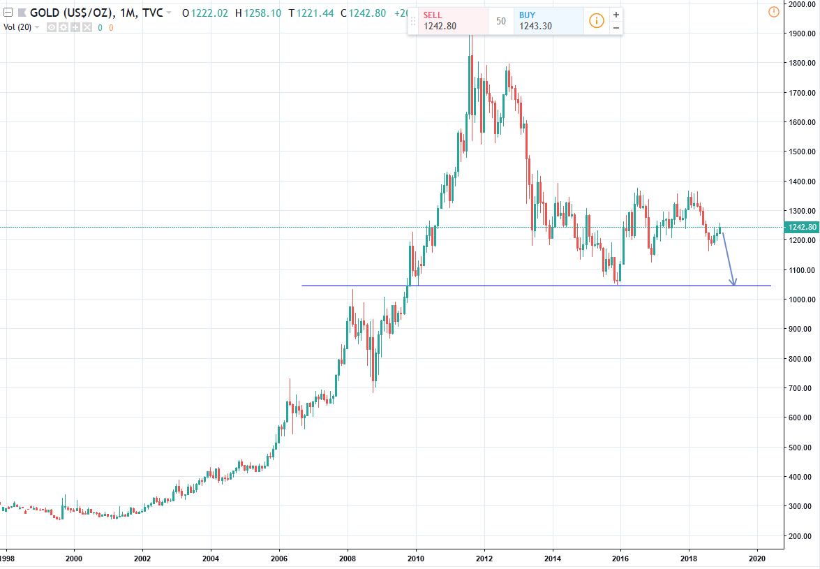 Das würde bedeuten, daß Gold auf 1000 USD fällt.
