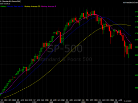 Auch hier führten 9 MA und vermehrt auch 20 MA den SPX nach oben. Mit Bruch des 20 MA war der Bullenmarkt vorüber. Beim 50 MA nochmals Reaktion nach oben und exakt beim 9und 20 MA Schnittpunkt war die Erholung dann vorbei. Noch einmal den 9 MA berührt und dann steil nach unten. Ebenso schnelle Erholung danach, 9 und 20 MA stellten keine Widerstände mehr dar, der 20 MA danach aber noch Unterstützung bei der ersten Korrektur.