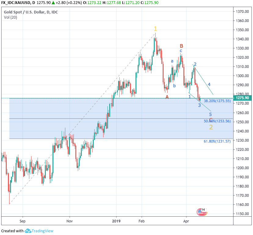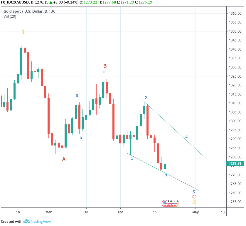 Das wäre die optimistische Variante eines EDT, wonach die Korrektur bald abgeschlossen sein könnte.Geht es jedoch auf direktem Wege unter 1.270 $ ohne zuvor mindestens die 1.281 $ überschritten zu haben, sollte die Korrektur etwas deutlicher ausfallen. (siehe oben)