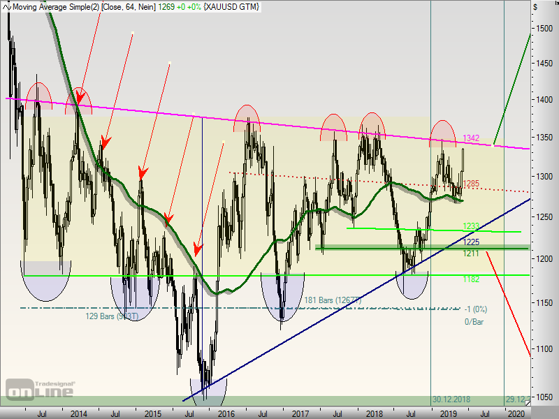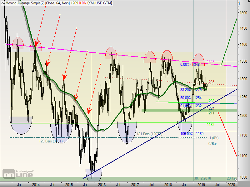 Danach vermutlich Korrektur des gesamten Anstieges seit 1.160 $ und im späteren Verlauf (2. Halbjahr) zumindest in Richtung 1.530 $. (eher 1.530 $ +, das vielleicht jedoch erst Anfang 2020)