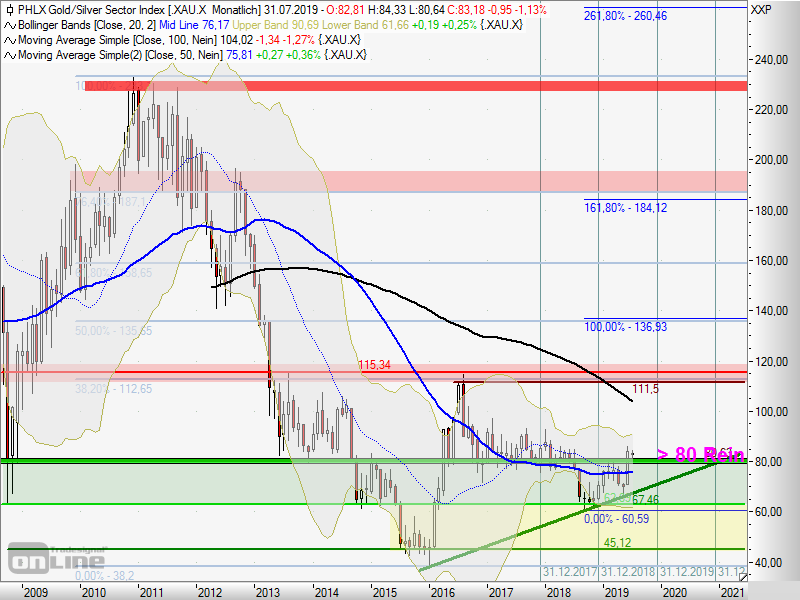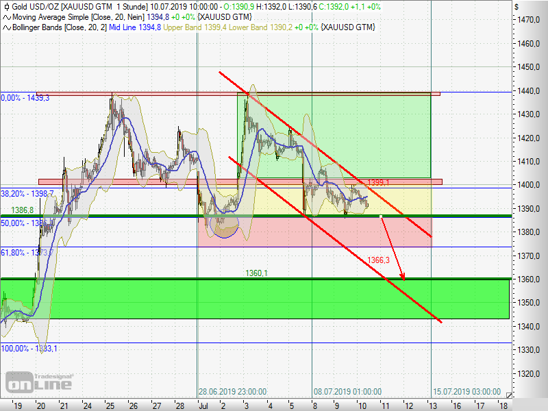 Weltwirtschaftswachstum. An diesem Mittwoch bestätigte er die Aussagen vor dem US-Repräsentantenhaus. Den Leitzins hatte die Fed damals in einer Spanne von 2,25 bis 2,50 Prozent belassen. An den Finanzmärkten wird fest mit einer Zinssenkung um 0,25 Prozentpunkte auf der nächsten Sitzung Ende Juli gerechnet.Ob das trotz der zuletzt veröffentlichten, recht schlechten COT-Daten ausreicht, den POG nach oben zu treiben, wird sich zeigen (generell müssen COT-Daten in einem Bullenmarkt anders bewertet werden als in einem Bärenmarkt).