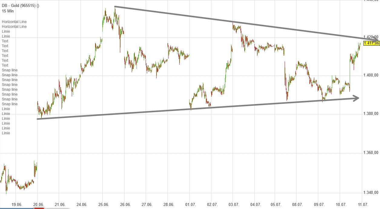 ...na ja , nicht täglich, aber am Freitag war's mal wieder soweit. Plötzlich, zwischen 12.00 und 13.00 Uhr ist jemandem eingefallen, dass er ja viel, viel zuviel Gold in seinen Hallen hat. Schwups , mal eben massiv auf den Verkaufsknopf drücken um möglichst viel und schnell und eben nicht marktschonend von dem glibbrigen Zeug los zu werden.