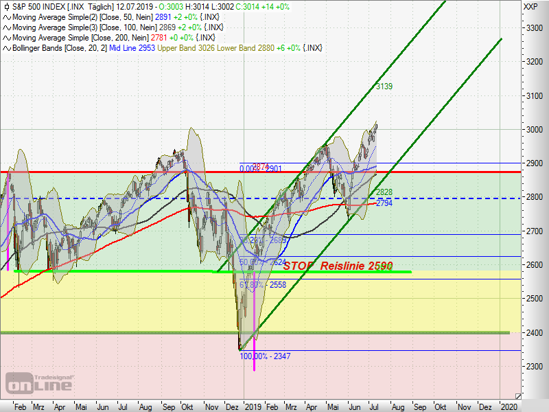 Gibt bei den (amerikanischen) Indizes zwar auch Schwächezeichen, aber (technisch) eindeutige Signale einer Topbildung bei den Aktienmärkten fehlen.