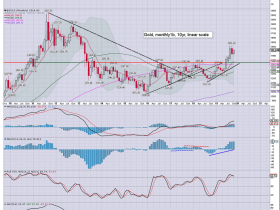 Der Monatschart zeigt das gigantische Triangle das wir erfolgreich 'abgewickelt' haben. Er zeigt auch, dass die Underperformance der Minen ggü. dem breiten Aktienmarkt 'Geschichte' sein sollte...