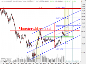 Noch ein chart zum Schluss. Xau holt auf. Die horizontallinien dienen eher zur Orientierung als WS und US..Aufwärtstrend gebrochen, gut für Minen :-)) Abwärtstrend hält an, gut für Minen :-)...Sollten wir jetzt eine