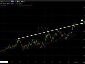 FNV: Die beste Aktie, ist gar nach aus einem Trendkanal nach oben ausgebrochen (Hier habe ich arithm. Chart genommen) Rücksetzer zur Trendline sind zu kaufen