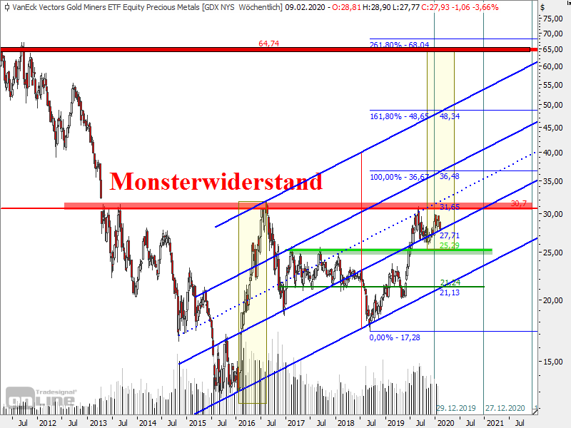 wir sollten im GDX nicht mehr fallen...ich rechne mit einem Verlauf zwischen der 2.Aufwärtslinie ( von unten) und dem Widerstand, wie Woernie sagt,Monsterwiderstand. Wird dieser Durchbrochen fliegt der Deckel und die Minen sollten hochschießen, aber die Drücker tuen ihr eigenes Spiel. Ziel von heute nach Überwindung das ATH.ca.150%
