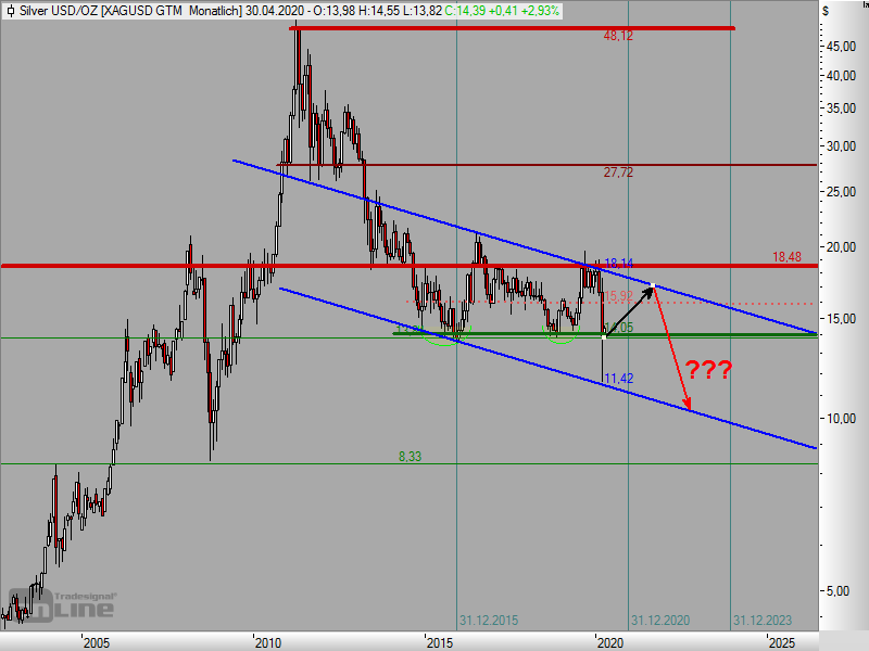 Gucken wir uns Silber an, was ich sehr selten mache. Wenn man sich das genau anguckt, ist durch Corona eigentlicht nicht viel passiert. Hätte auch ohne Corona so kommen können. Wir sind sauber im Abwärtskanal und wann kommen wir da raus?? 1 Monat oder 3 Jahre oder 8 Jahre...??? Ich weiss es nicht und das kann es keiner. Allgemein sehe ich keine Stärke bzw Durchschlagkraft bei den Minen....POG hält sich gut und das war es auch so.