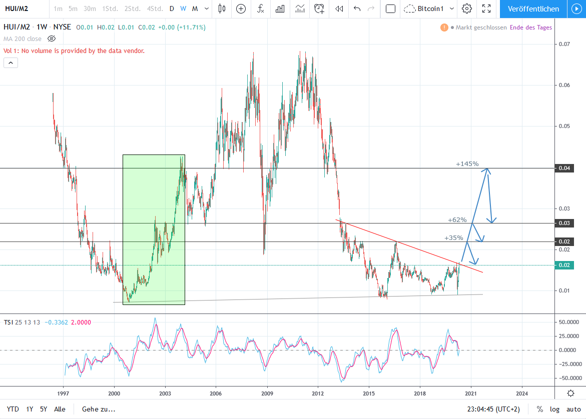 Der xau und gdx sind mit dem wochenclose drüber. Ob das nachhaltig ist, wird man sehen. Eine noch starke Woche würde gut tun, aber die aprilkerze ist schon enorm. Evtl laufen wir bis zu herbstt durch. Das ist schwer vorstellbar. Auch die Präsidentschaftswahlen stehen vor der Haus