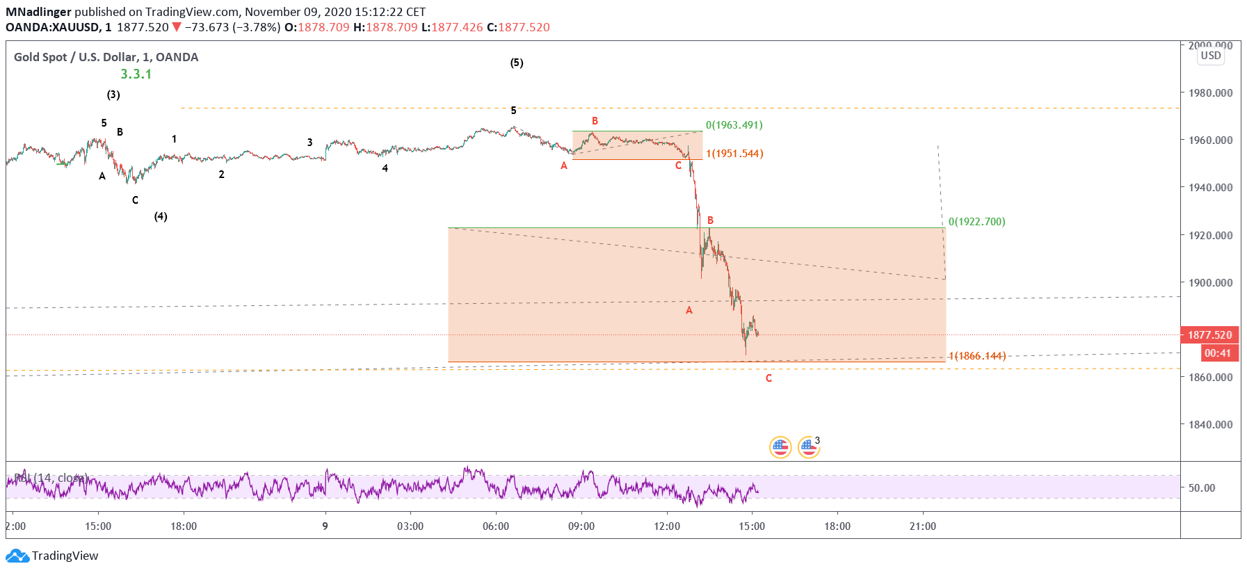 nicht schön der aktuelle Abverkauf, aber solange wir über 1882 bleiben ist der aufwärtstrend wie in Calderas und meiner Zählung intakt, wird wohl eine herbe Welle 2 - hoffentlich...