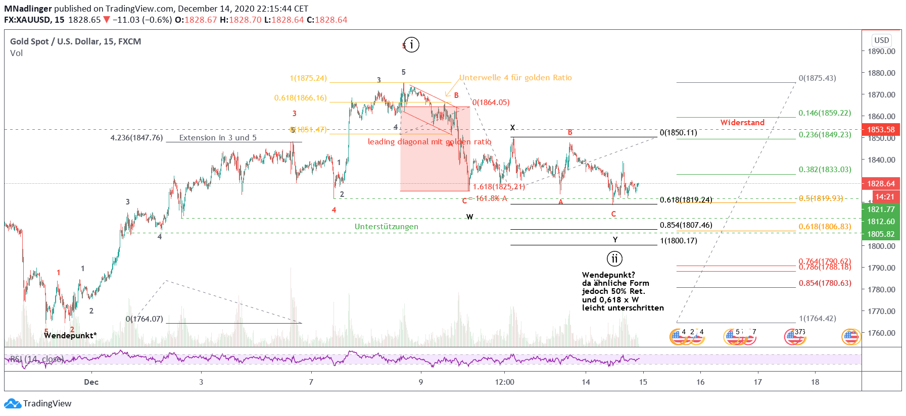 Oder es ist ein vollendetes Doppel-ZigZag bis 1819 USD statt 1807 USD wie skizziert, welches zumindest einigermaßen ins Bild passt. Nur um diese Alternative nicht auszuschließen...