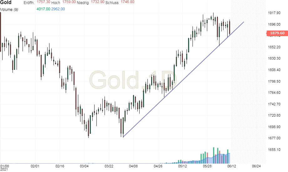 Nach dem Ausbruch aus dem fallenden Trendkanal Anfang Mai hat sich der bereits ab April ausbildende ansteigende Trendkanal...