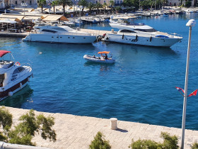 Die eigentliche Überraschung dann an Land: die alte Hafenarchitektur eingestampft. Zu Gunsten eines neuen Anlegesteges. Viel Beton . Die wenigen Plätze für Kleinboote von einheimischen Booten belegt. Mit dem Dinghi anlegen für den Hundespaziergang: ein echt abenteuerliches Unterfangen. Der Parkplatz für Besucher des Nationalparks: rammelvoll. Das kleine Strandbad am Ortsausgang, um diese Jahreszeit üblicherweise verwaist, heute atmosphärisch wie im Freibad, Pommesbude und 3 (drei) Strandbars…. ![]()