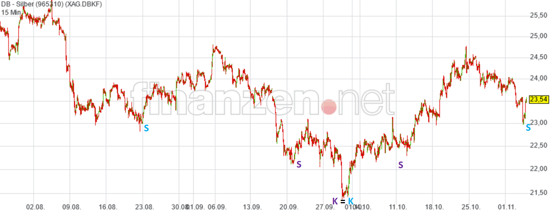Demnach stünde beim Überschreiten der Nackenlinie (ca. 24,80 USD) ein Trendbruch in Aussicht.