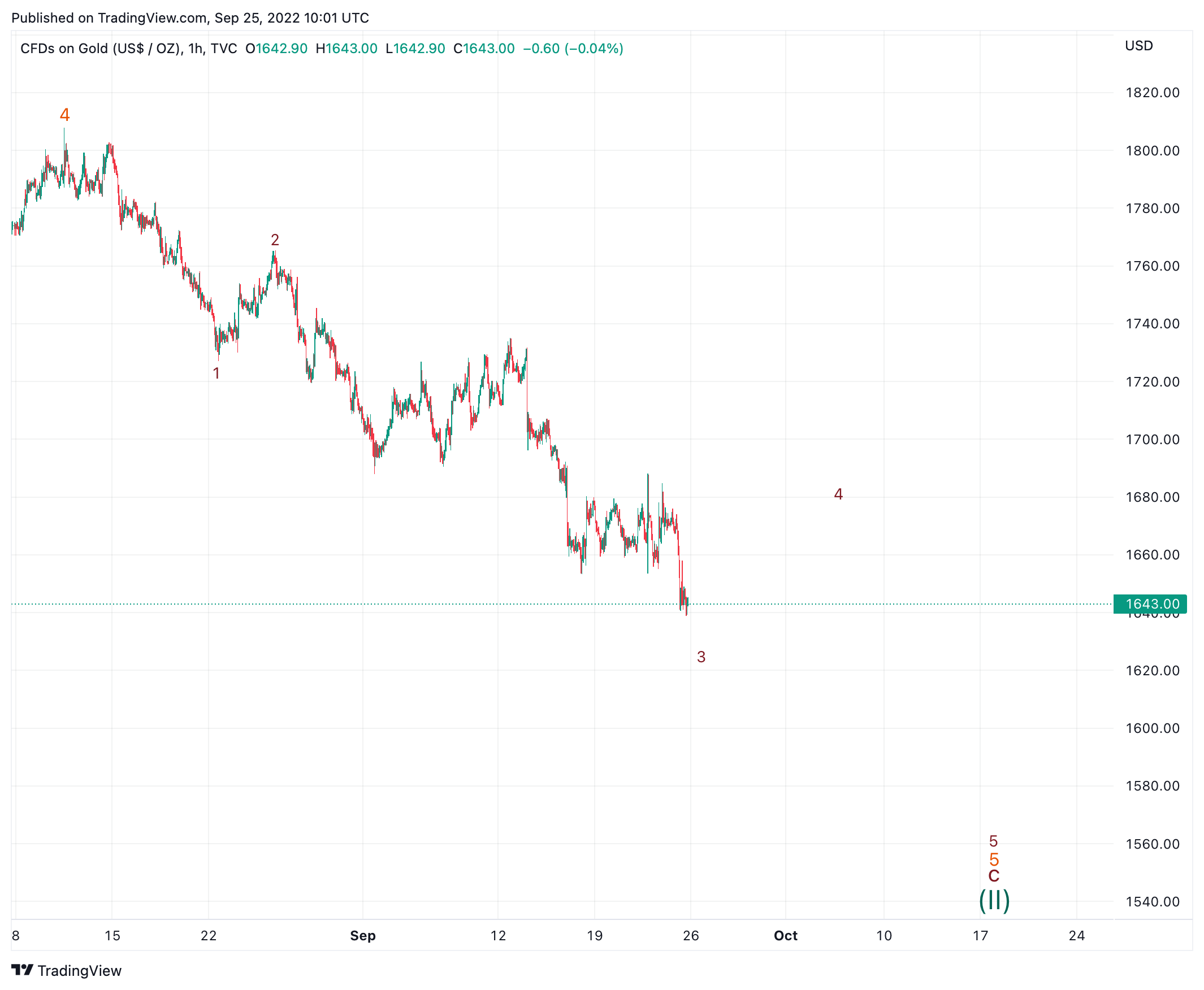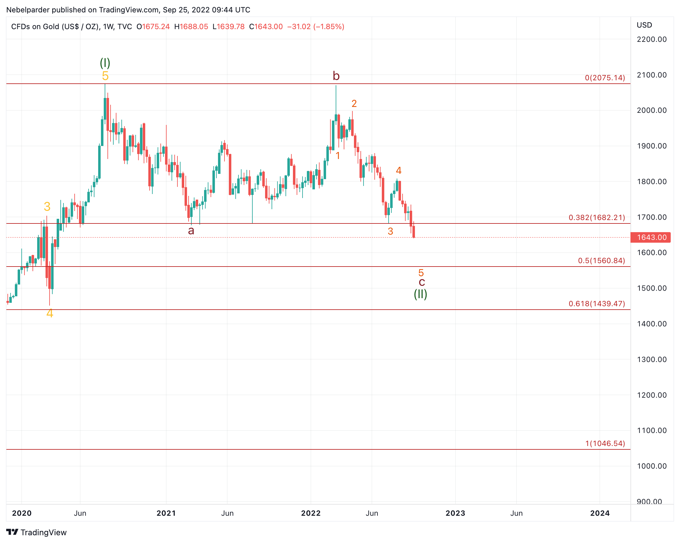 Das 50 % RT der großen Korrektur-Welle II liegt bei 1.560,84 $.