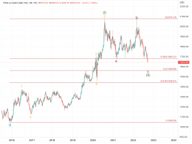 Mit 61,8 % der Welle 1-3 kommt man für die Welle 5 der c auf 1.567,27 $.